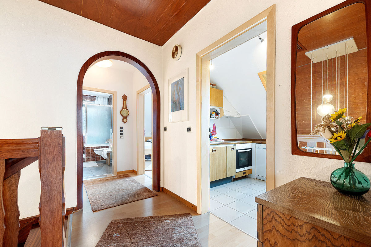 Waschmaschine und Trockner und eine private Sauna stehen in Abstimmung mit anderen Gästen im Souterrain zur Verfügung.