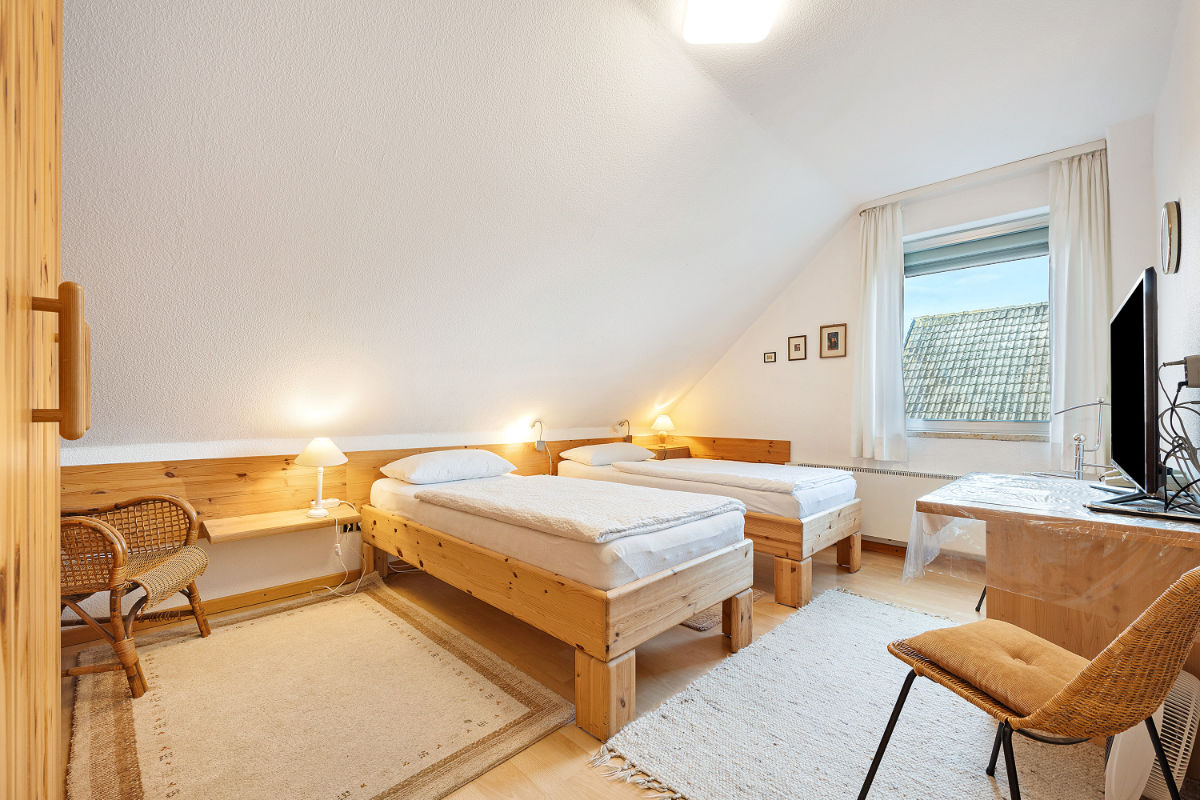 Zusätzlich bieten beide Zimmer Fernseher und Arbeitsplatz für Home-Office.