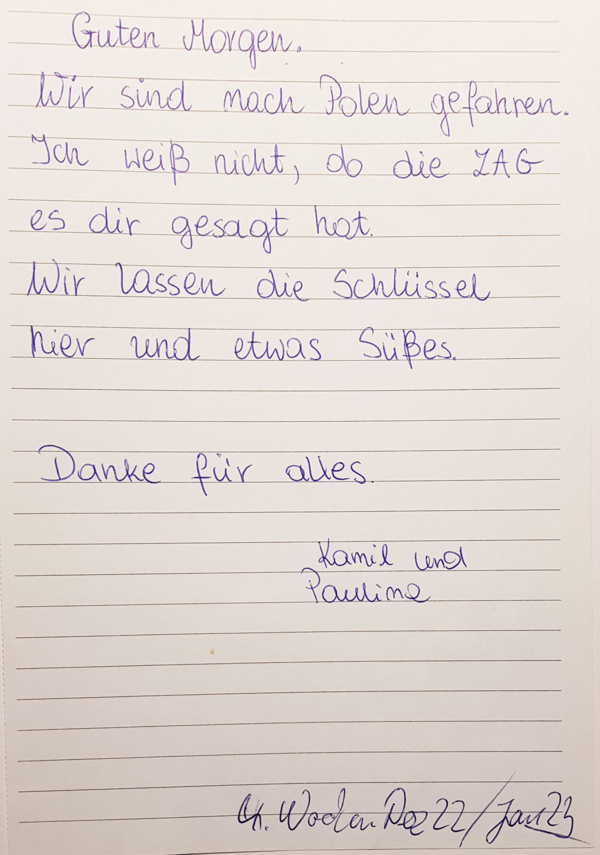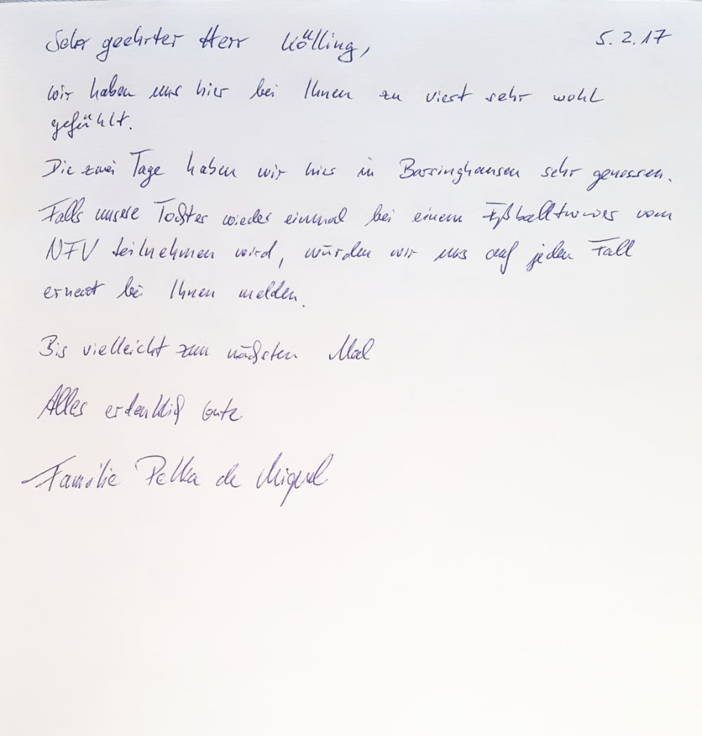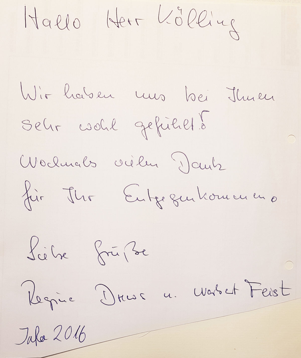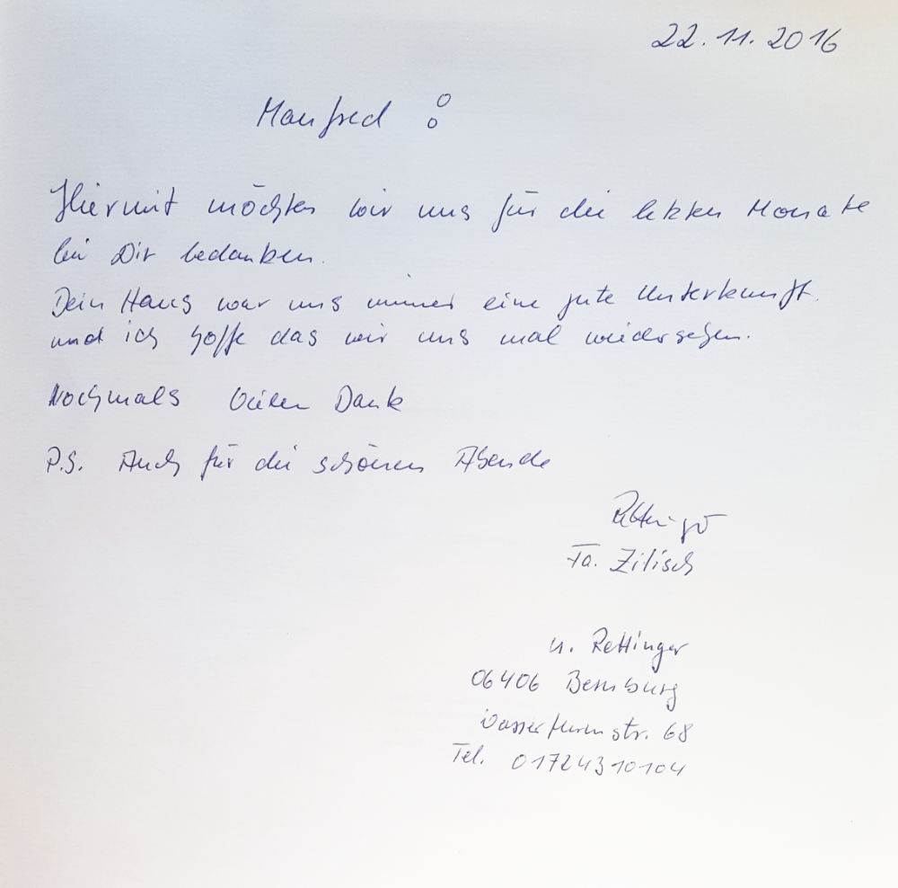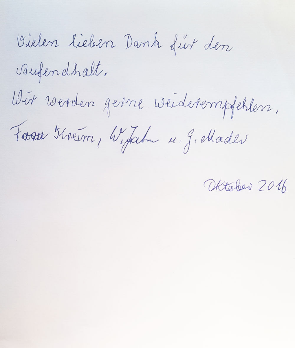 Ich wollte mich noch einmal bei Ihnen melden. Es hat mir bei Ihnen sehr gut gefallen, außerdem wollte ich eben Bescheid geben, dass ich meine Ausbildereignungsprüfung bestanden habe.